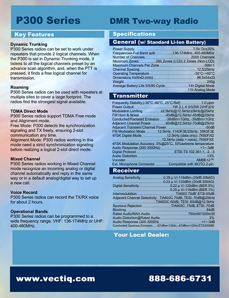 The P300 radio series incorporates the latest digital technologies and the most- requested features in one compact, easy-to-use, and cost effective package.